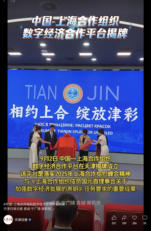 中国—上海合作组织数字经济合作平台落地,惠及天津企业发展。天地伟业技术有限公司的智能安防产品为乌兹别克斯坦纳曼干地区波普斯基500兆瓦光伏项目服务,提供了有力的智能安全保障。“近几年,我们积极拓展上合组织国家‘朋友圈’,已参与乌兹别克斯坦、哈萨克斯坦、印度等国的项目。数字经济合作平台成立后,将为我们创造更广阔的合作前景和更多元的合作机会。”企业总工办主任魏云说。市委网信办主任、市数据局局长邓光华表示,天津将以上合组织峰会召开为契机,常态化推动与上合组织国家数字经济领域协作,构建城市、产业、高校、智库间多层次合作生态,助力上合组织国家数字经济高质量发展。“上合组织合作中心、合作平台落地天津,让我们充满期待。建议重点围绕绿色低碳循环经济、新能源技术开发和应用、数字互联互通、职业教育等议题与上合组织成员国进一步深入开展国际交流,创设长效合作机制并尽快推动项目实施落地。”刘晨阳说。