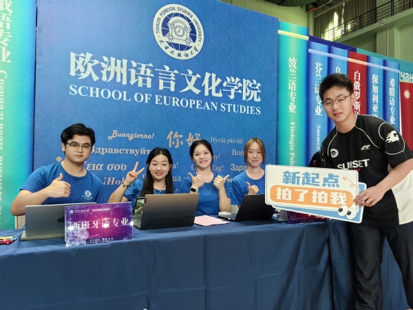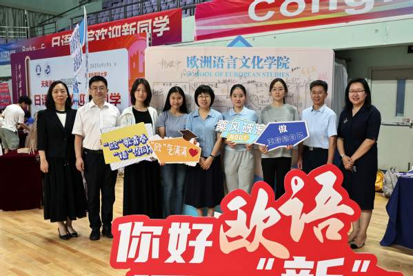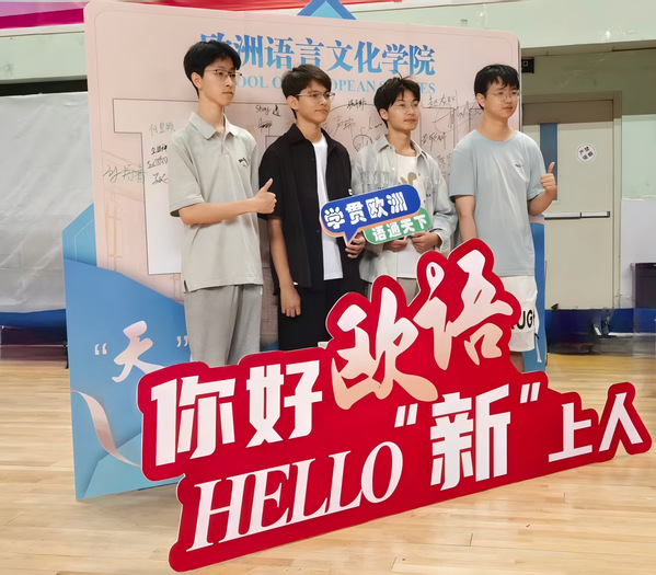 欧洲语言文化学院的迎新背景板由代表学院的这本书和象征16个专业的16本书共同组成——拼成一道“知识之门”,每个梦想都将在此启程。新生们可在寓意开云集团官网开云集团官网首页_开云(中国)_开云(中国)与上合精神的“‘天’作之‘合’”展板上签名留念,正式成为“天外欧语人”。学院贴心准备了多语种“你好”手提袋和卡套以及可自由拼字的创意文具,陪伴新生从第一声问候走向世界,记录每一个闪光的起点。