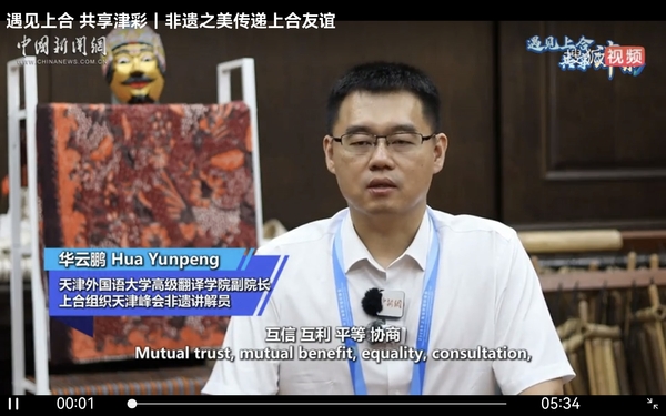 【相约上合】上合峰会期间,中新社专访了我校高级翻译学院副院长、上合组织天津峰会非遗讲解员华云鹏。报道通过中新社全媒体平台发布,并由中央网信办向全网推送。
