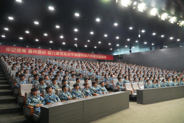 天津城建大学邀请天津市老战士宣讲团、和平区军休关工委宣讲团成员、武警天津总队政治工作部原主任陈强为2025级新生作国防教育专题讲座。陈强同志用详实的数据和生动的案例介绍我国国防和军队现代化建设的辉煌成就,阐释居安思危之大义,涵养心系国防、投笔从戎的赤子情怀,砥砺青年学子报国之志。