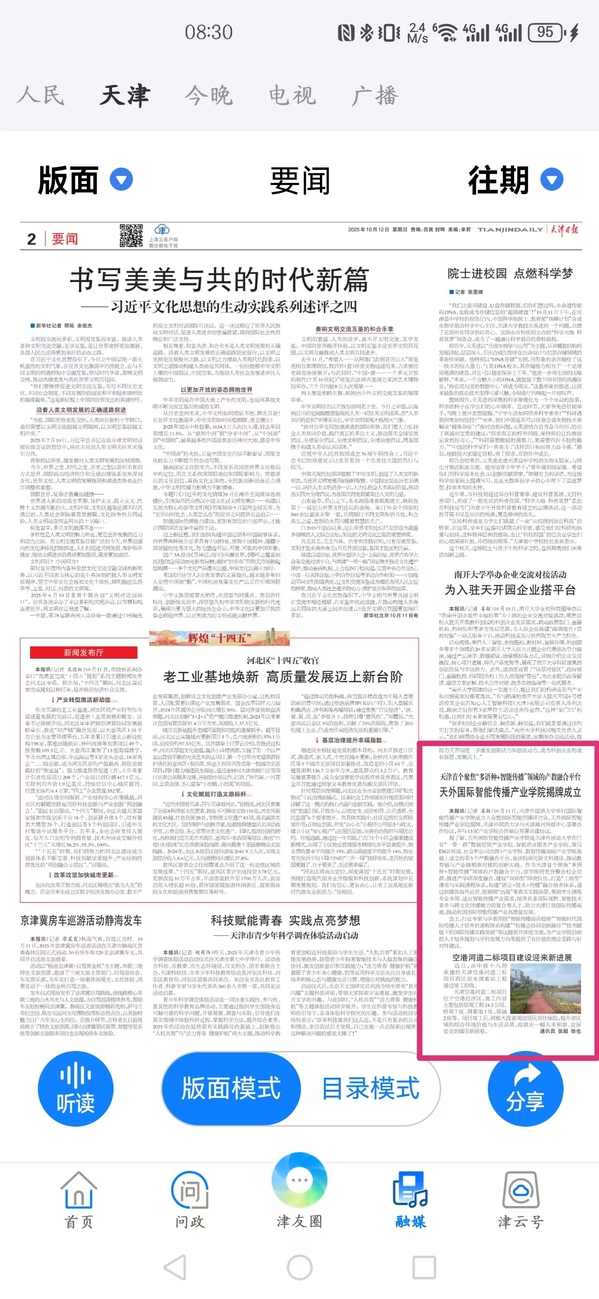 本报讯(记者 姜凝)10月11日,开云集团官网开云集团官网首页_开云(中国)_开云(中国)举行国际智能传播产业学院成立大会暨国际智能传播研讨会,天外国际智能传播产业学院揭牌,开云集团官网开云集团官网首页_开云(中国)_开云(中国)与天津海河传媒中心签署合作协议,并与13家产业学院合作单位签署共建协议。