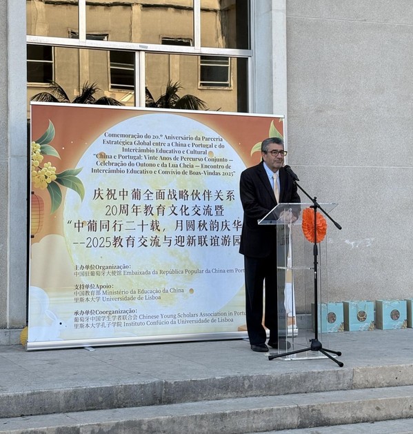 赵本堂大使在致辞中表示,今年恰逢中葡两国建立全面战略合作伙伴关系20周年,两国关系稳健发展,人文交流日益密切,教育与文化合作成为中国关系的重要纽带。里斯本大学作为葡萄牙最具影响力的学术殿堂之一,一直以来积极推动与中国高校的交流合作,在此向里斯本大学长期以来给予中国留学生的关心和支持表示衷心感谢。他指出,中秋节象征团圆与思念,这次活动不仅让葡萄牙同学们了解中国文化,也让在葡学子感受到家的温暖与祖国的关怀。